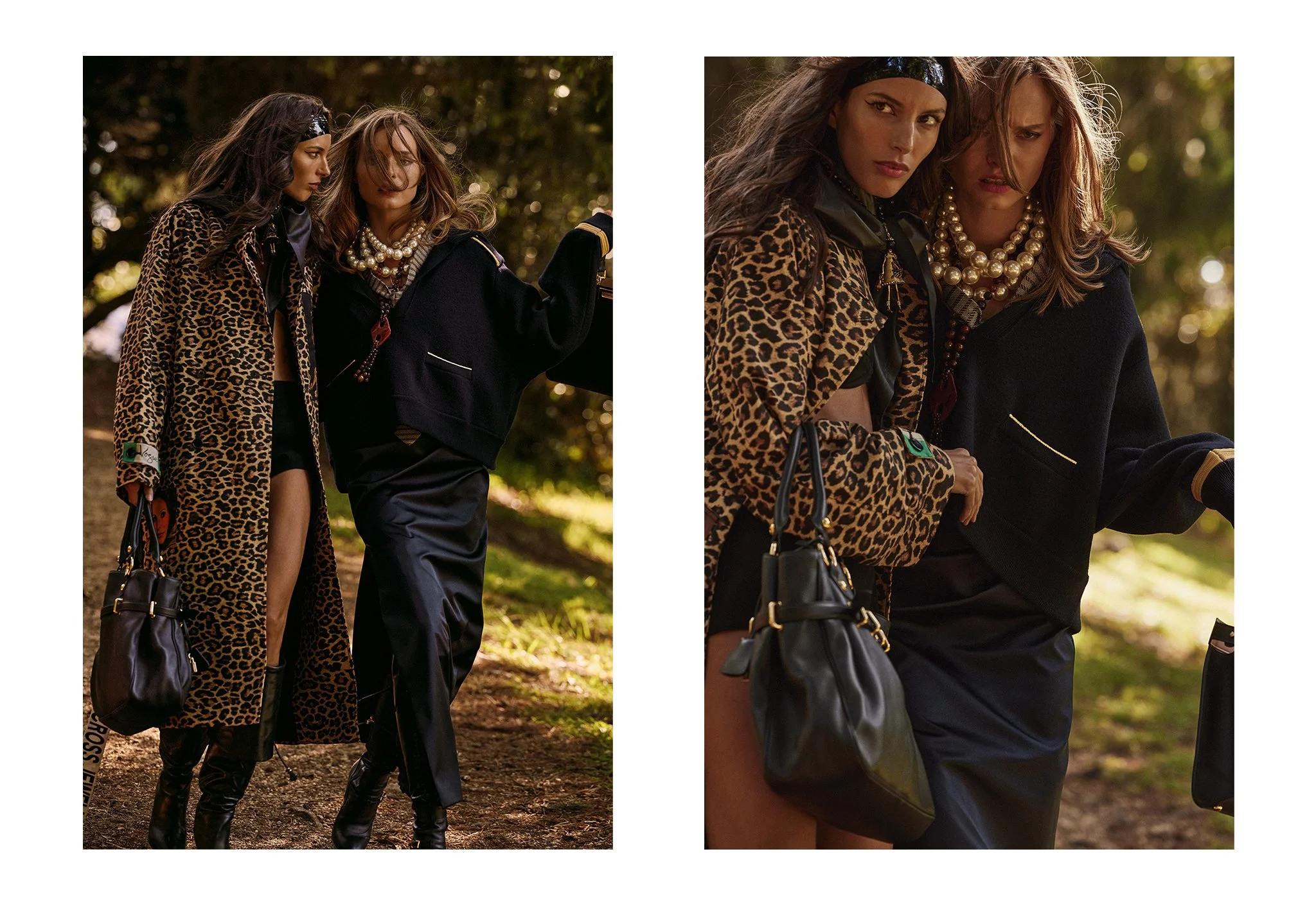 Kate: Verner coat, St Agni leather scarf, bralette and tailored brief, Celine bag and boot, vintage necklace. Aria: Celine jacket, Fendi dress, bag & boots, vintage necklaces and tie