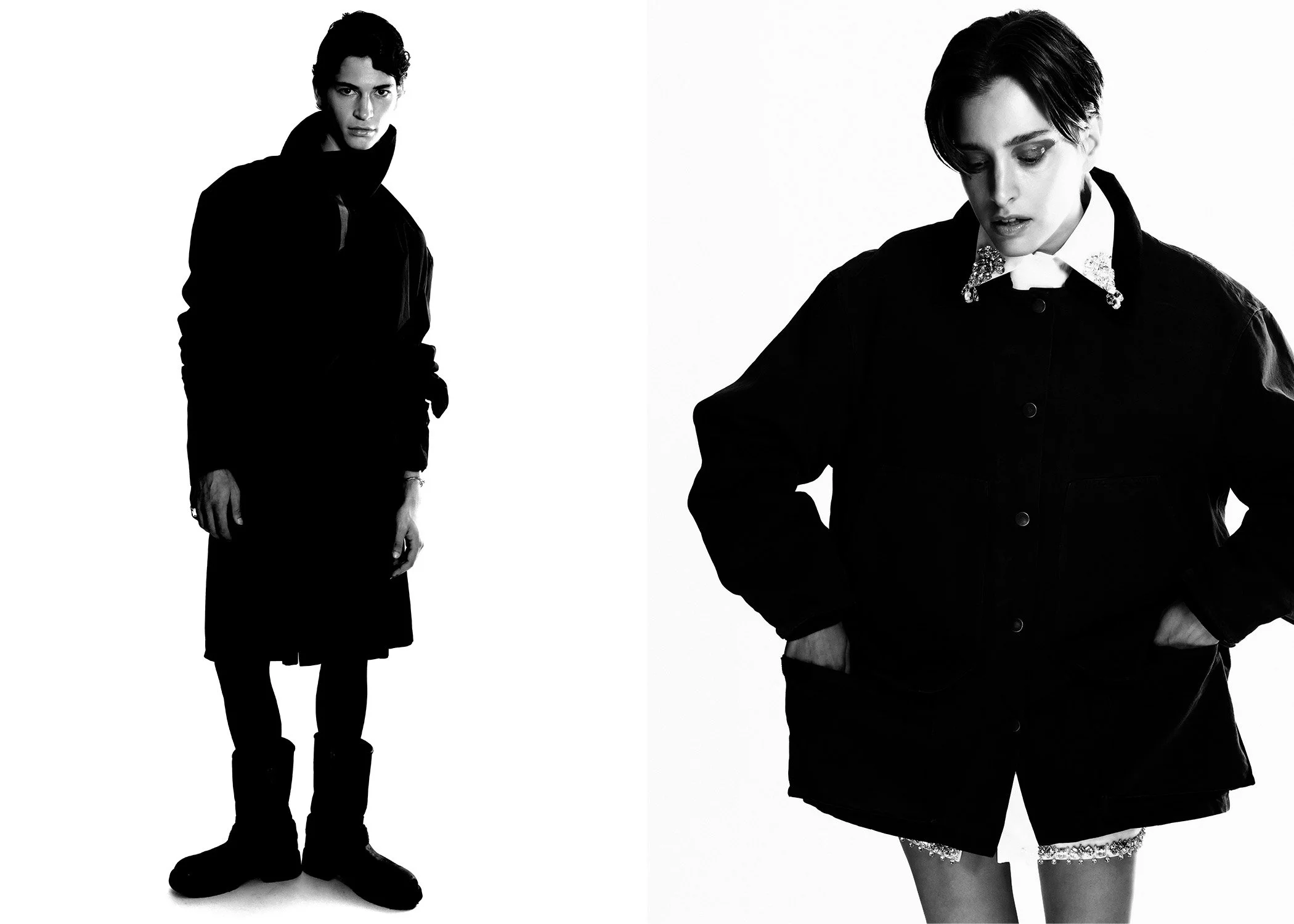 Rayan wears Strateas Carlucci coat, Alix Higgins stockings, Johnny Reb boots, Tiffany & Co ‘Tiffany Knot’ bangle. Lea wears Prada jacket, dress.